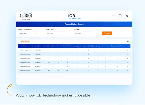 The GeBBS iCB platform is an automated workflow tool that helps credit balance reconciliation by automating functions such as tracking and trending credits, root-cause analysis, accurate and timely resolution, and the creation of provider specific customizable refund packets. The iCB platform efficiently manages current credit balances and also helps prevent future credit balances while decreasing operating costs by reducing the allocated staff and more than doubling productivity.