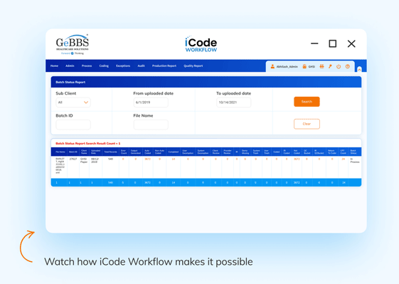 GeBBS iCode Workflow is a secure cloud-based medical coding software integrated with an autonomous coding engine that supports multispecialty coding. iCW provides a one-stop coding solution and a single platform with integrated coding quality control and custom reporting.